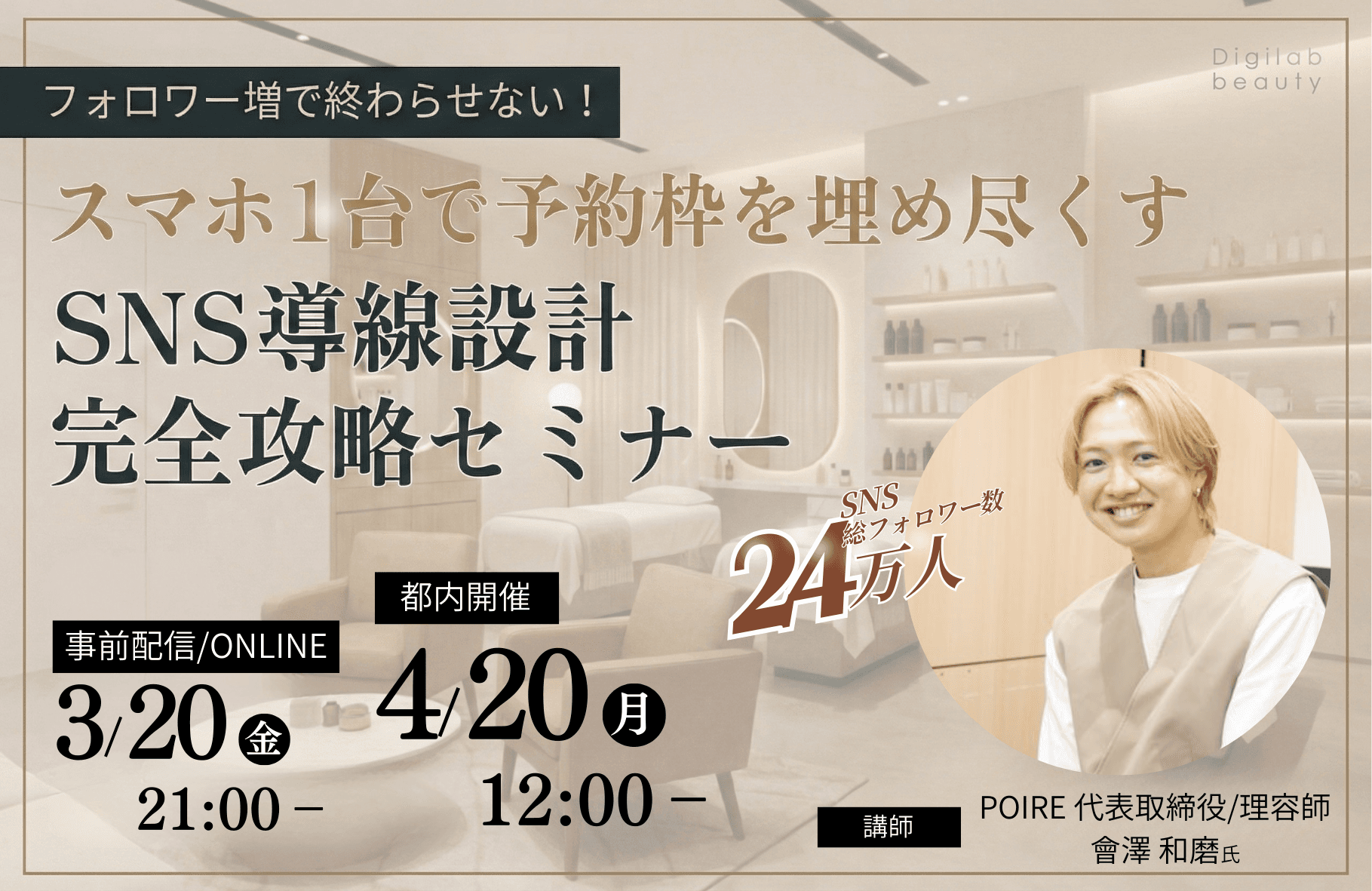 内容:SNS導線設計完全攻略。スマホ1台で予約枠を埋め尽くす