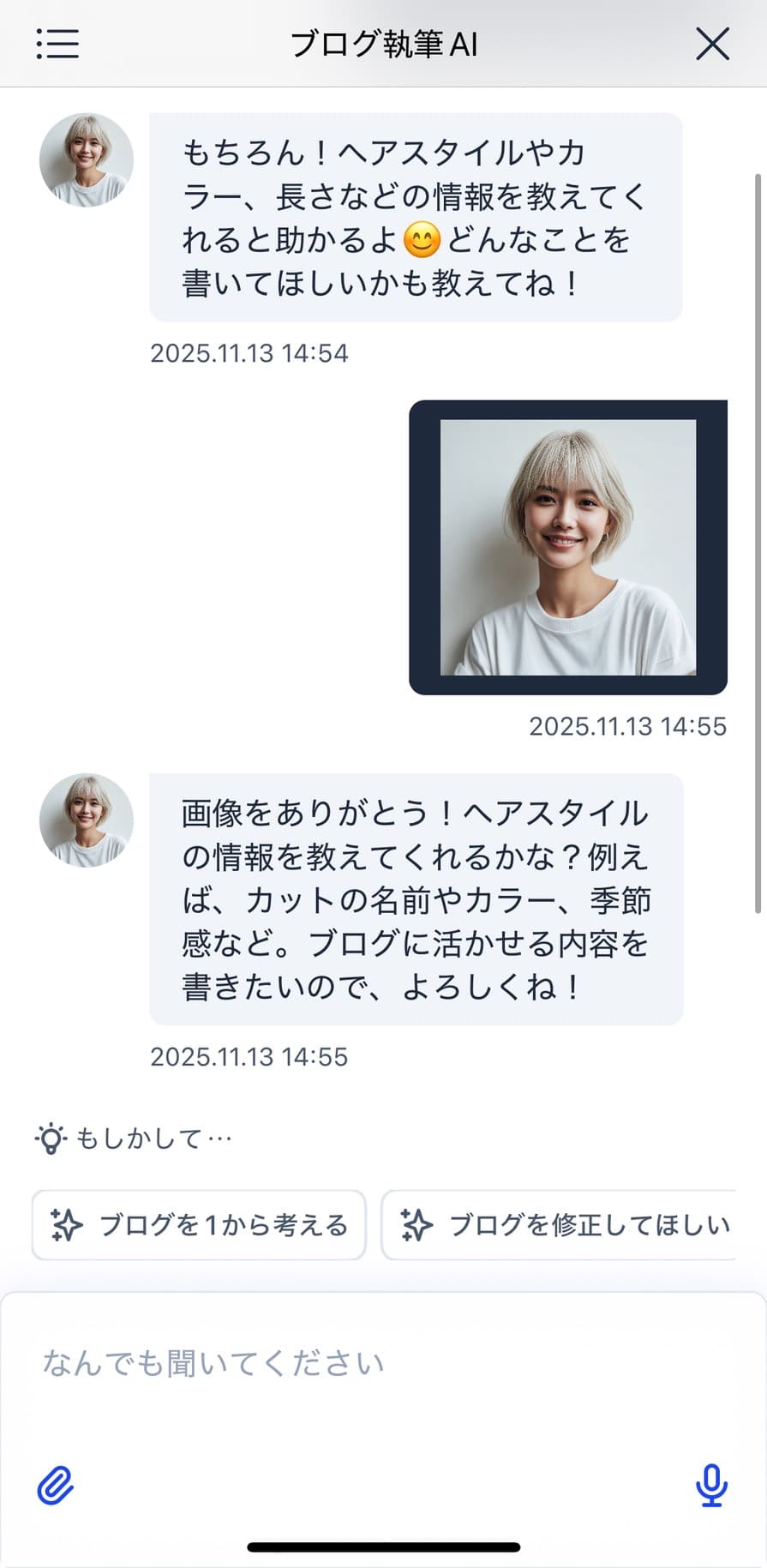 スタイル写真を送るだけで、AIがその内容に合った文章や大まかなタイトルを提案。